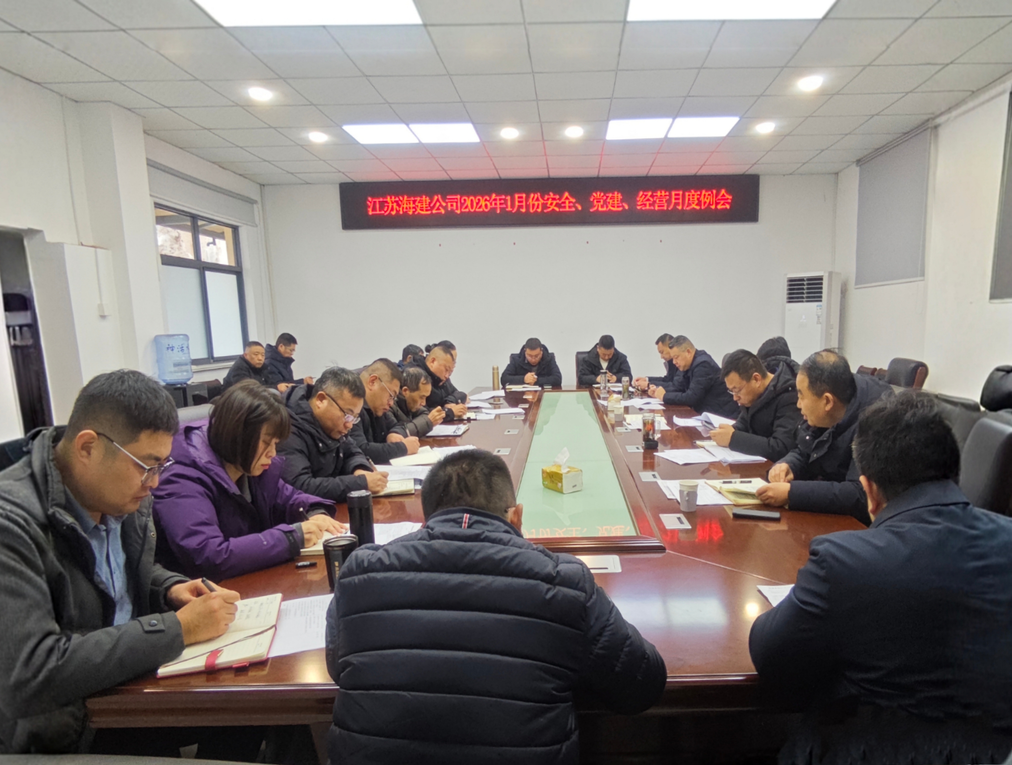 為統(tǒng)籌推進2026年各項工作落地見效,確保新年工作實現(xiàn)“開門紅”,海建公司于1月4日在一樓會議室組織召開2026年1月份安全、黨建、經(jīng)營月度例會。公司領(lǐng)導(dǎo)班子成員、各單位、部門主要負責人參會,會議由總經(jīng)理徐其翔主持。