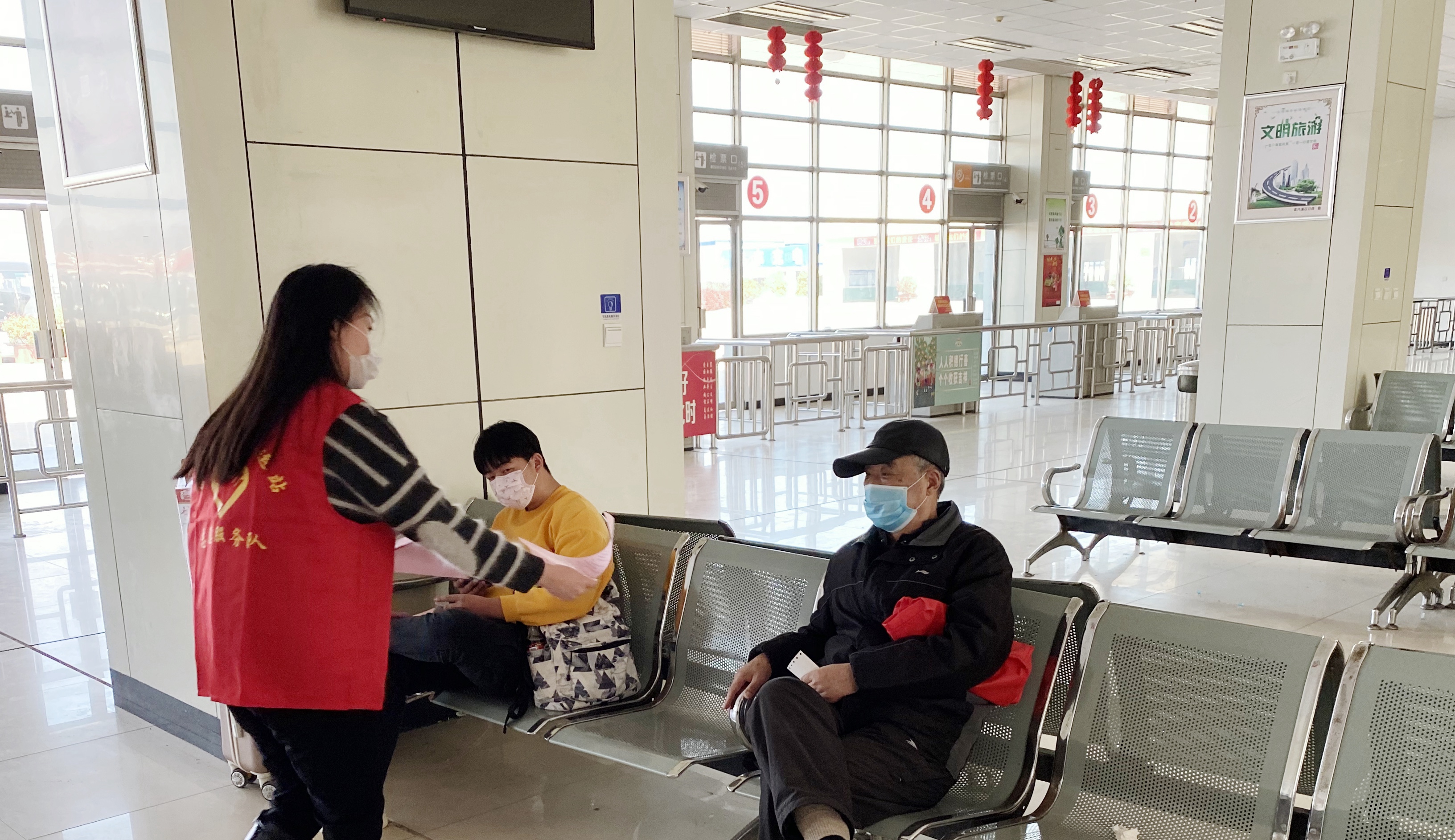 在灌云客運(yùn)站的候車大廳,志愿者面向旅客發(fā)放了道德宣傳圖及一些有德育價(jià)值的書籍,從“講堂”到“大廳”,宣講身邊好人事跡,由內(nèi)而外進(jìn)行傳承與發(fā)揚(yáng),活動(dòng)取得了良好效果。