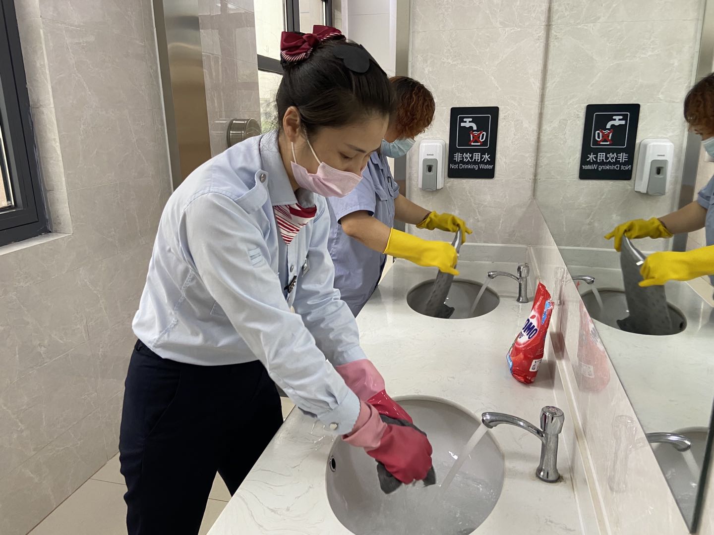 疫情當(dāng)前,城市動(dòng)車站作為人口流動(dòng)和聚集較多的地點(diǎn)對(duì)疫情防控更是一刻不敢松懈。為每一位乘客做測(cè)溫登記,檢查健康碼,定時(shí)對(duì)候車廳打掃消毒,城市動(dòng)車組把疫情防控落到實(shí)處。為了乘客多一分安心與踏實(shí),城市動(dòng)車的保潔和站務(wù)員們配合一起對(duì)候車廳座椅上座墊進(jìn)行了清洗,站務(wù)組的姑娘們帶好手套,對(duì)每一個(gè)座墊仔細(xì)清洗消毒。連云站站長(zhǎng)孫曉婷在面對(duì)乘客問(wèn)詢時(shí),她說(shuō):“候車廳的座椅是乘客進(jìn)站后的第一歇腳處,座椅我們每天早晚都消毒一次,而坐墊與乘客直接接觸,我們更應(yīng)該要定期清洗,既讓乘客感到潔凈舒適,也是我們對(duì)疫情防控貢獻(xiàn)自己的一份力量?!?/span>