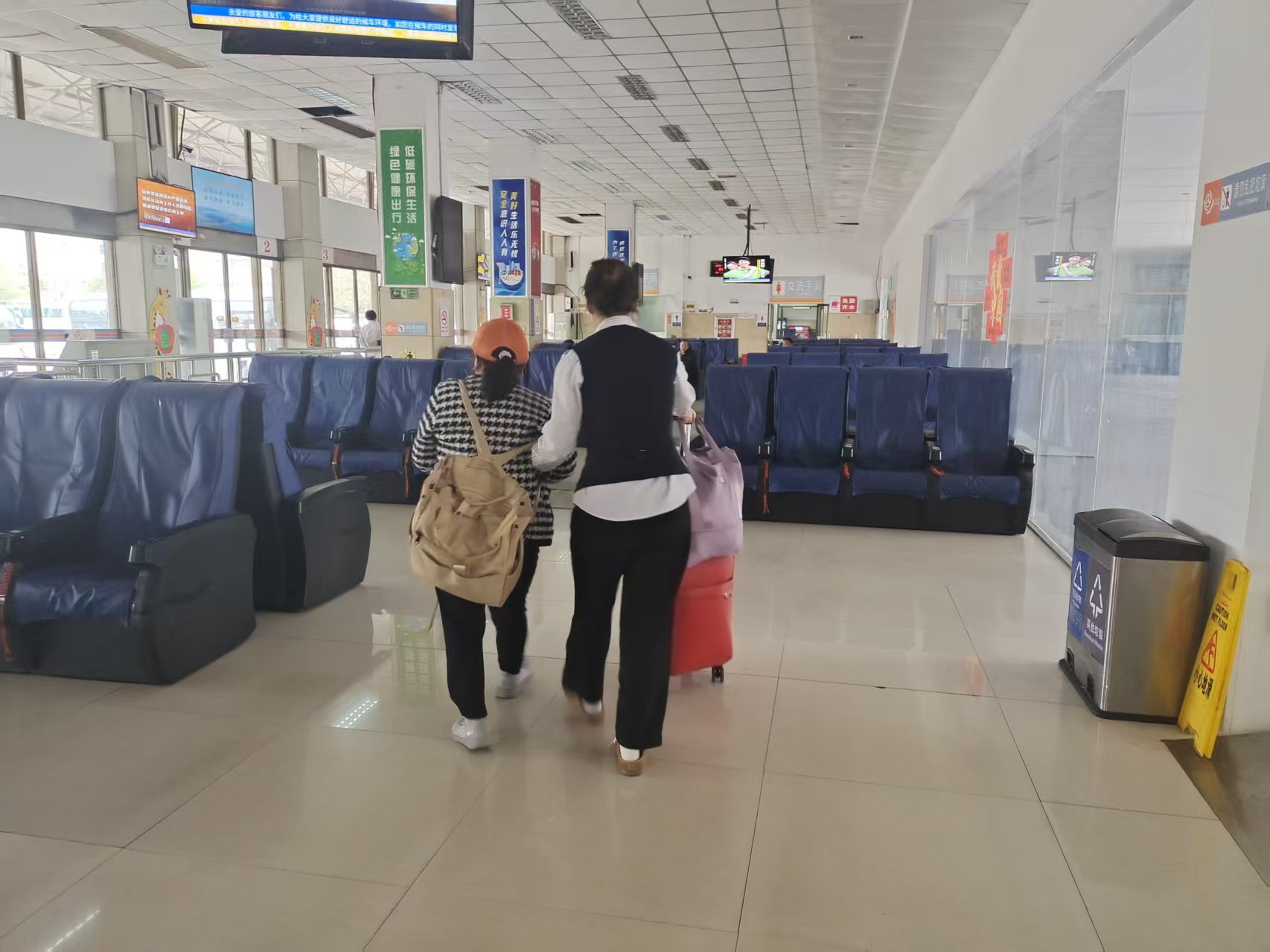 9月26日,連汽蘇欣快客站候車大廳里,“雷鋒車”手駱青在服務(wù)臺發(fā)現(xiàn)一位拄著盲杖的旅客,手里拖著多件行包,腳步試探著,盲杖輕輕敲著地,卻沒敢再往前挪半步。