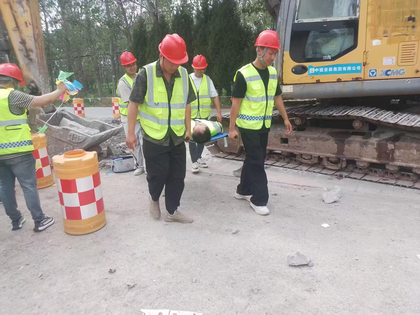 此次演練模擬了施工現(xiàn)場挖掘機駕駛員因違規(guī)操作造成施工現(xiàn)場人員腿部受傷的突發(fā)場景,演練涵蓋了事故發(fā)生、事故上報、應(yīng)急響應(yīng)、現(xiàn)場救援、醫(yī)療處置等全流程。整個演練過程按照制定的應(yīng)急演練方案緊張有序的進行,各環(huán)節(jié)銜接緊密,參演人員分工明確,展現(xiàn)了良好的應(yīng)急協(xié)作能力。