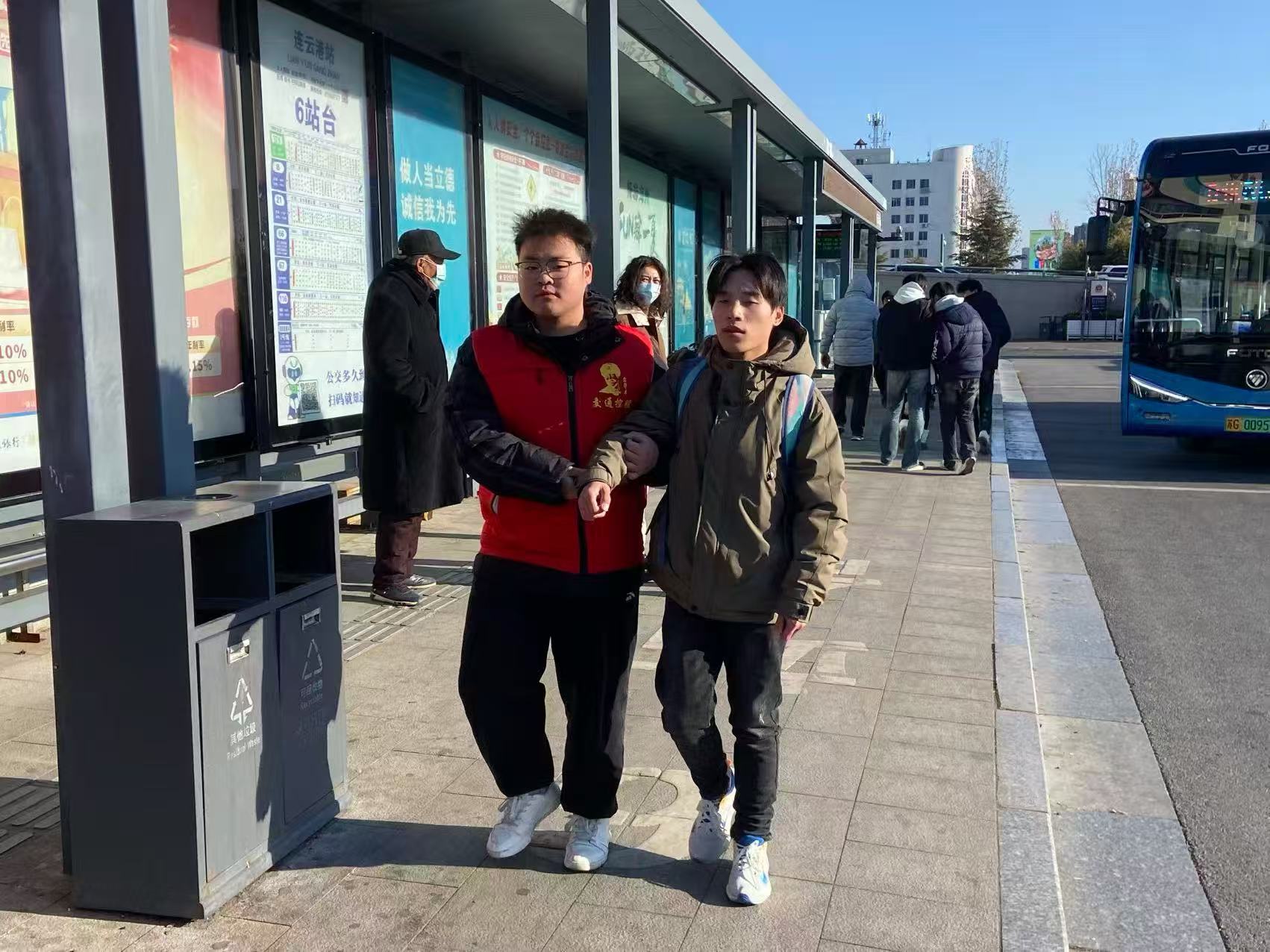 元旦假期第二日,高鐵站“海之緣”服務(wù)臺(tái)接到盲人旅客出行求助后,立即啟動(dòng)“愛(ài)心接力聯(lián)盟”聯(lián)動(dòng)機(jī)制,與“雷鋒車”驛站快速對(duì)接。驛站高校志愿者聞令而動(dòng),第一時(shí)間趕赴約定地點(diǎn),開(kāi)啟暖心護(hù)送服務(wù)。