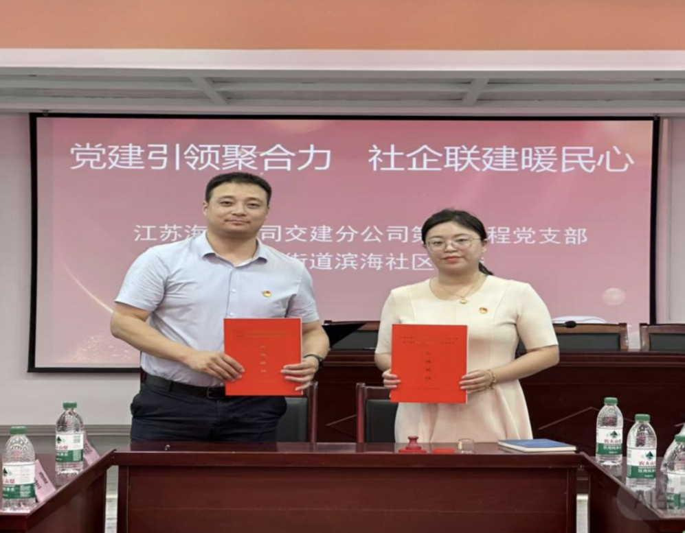 江蘇海建交建分公司第五黨支部與濱海社區(qū)黨委簽約黨建共建