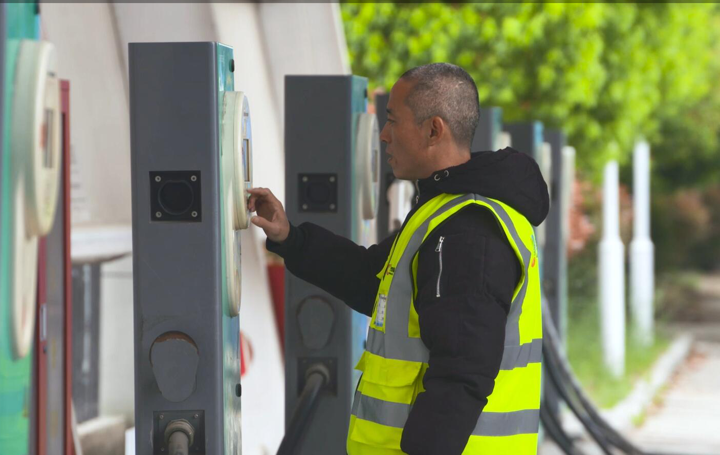 他—董梁,江蘇明茂新能源科技有限公司充電工,也是一名中共黨員。1997年他從部隊(duì)復(fù)員后被分配到公交集團(tuán)工作。走過(guò)春秋、渡過(guò)冬夏,彈指揮間幾十載。幾十載的人生耕耘,寒來(lái)暑往,花謝花開(kāi),讓這位個(gè)頭不高卻已過(guò)不惑之年的他、歷練出了寬容待人、隨遇而安的胸襟。他干過(guò)駕駛員、售票員、收銀員等各種不同的崗位。自2016年1月,明茂新能源公司正式投入運(yùn)行時(shí),他又被調(diào)到明茂新能源公司西城充電站做一名充電工。他的家距離上班的充電站要有很遠(yuǎn)的一段路程,而且家中上有年邁的老母親要照顧,下有剛上小學(xué)的孩子要每天接送。他深知干充電工作的辛苦,不僅要起早貪黑,還經(jīng)常不定時(shí)上下班,但是他沒(méi)有任何情緒和怨言,而是非常樂(lè)觀積極的投入工作。為盡快融入充電工這個(gè)角色,他不懂就問(wèn)、不會(huì)就學(xué),短短幾天的時(shí)間,他便學(xué)會(huì)了如何操作和遇到突發(fā)情況時(shí)的應(yīng)急處理。