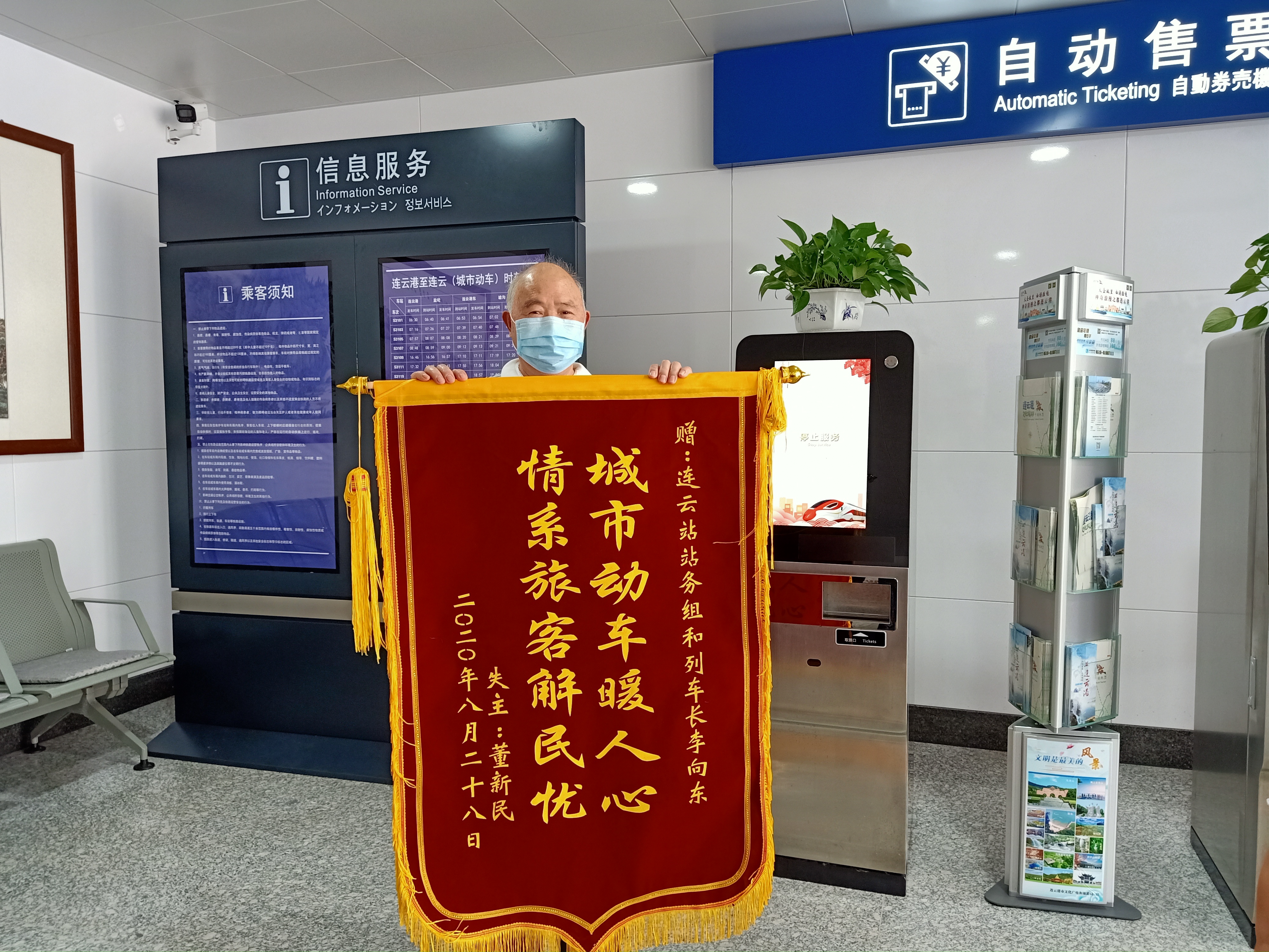 大爺回去一直惦念著此事,想用最淳樸真誠的方式表達他的感謝。隔了幾天后,送來了錦旗及感謝信。紅艷艷的錦旗是對城市動車工作人員的肯定。城市動車工作人員能做到急乘客所急,憂乘客所憂,盡最大的努力去幫助他們。