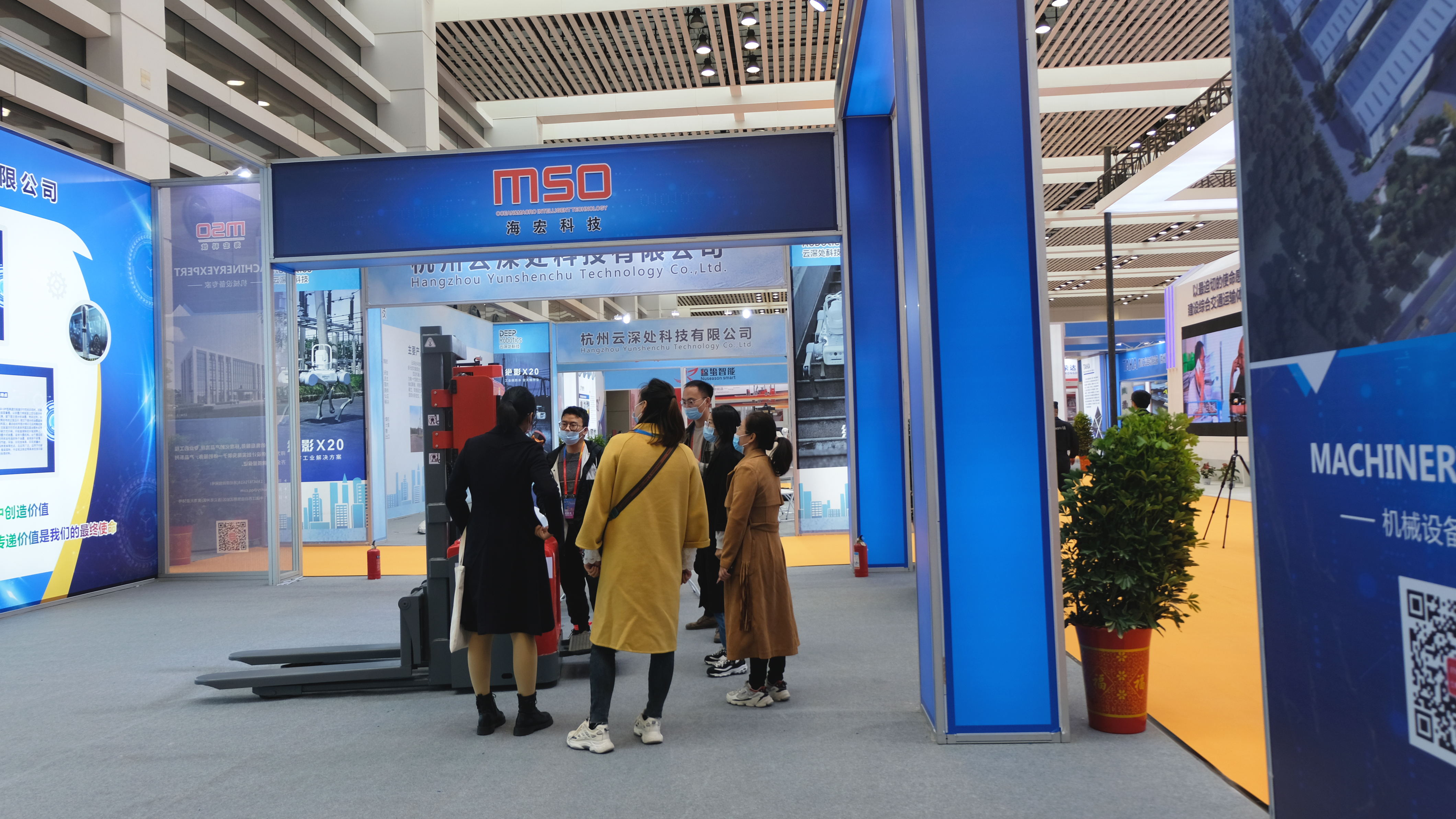 海宏科技主要在智慧物流科技裝備與物流綜合服務(wù)專業(yè)展區(qū)展出。本次參展的主要產(chǎn)品有:公司自主研發(fā)生產(chǎn)的具有專利的MSO-MC5型多軸運(yùn)動(dòng)控制器、MSO智能物聯(lián)網(wǎng)終端設(shè)備、智慧物流產(chǎn)品——全向移動(dòng)機(jī)器人(AGV)。其中,全向移動(dòng)機(jī)器人(AGV)極大地吸引了參觀來訪人員的興趣,品質(zhì)卓越的產(chǎn)品獲得了廣泛認(rèn)可。此外,海宏科技的彎管機(jī)、工業(yè)機(jī)器人、自動(dòng)上下料機(jī)器也在三號(hào)廳展出。