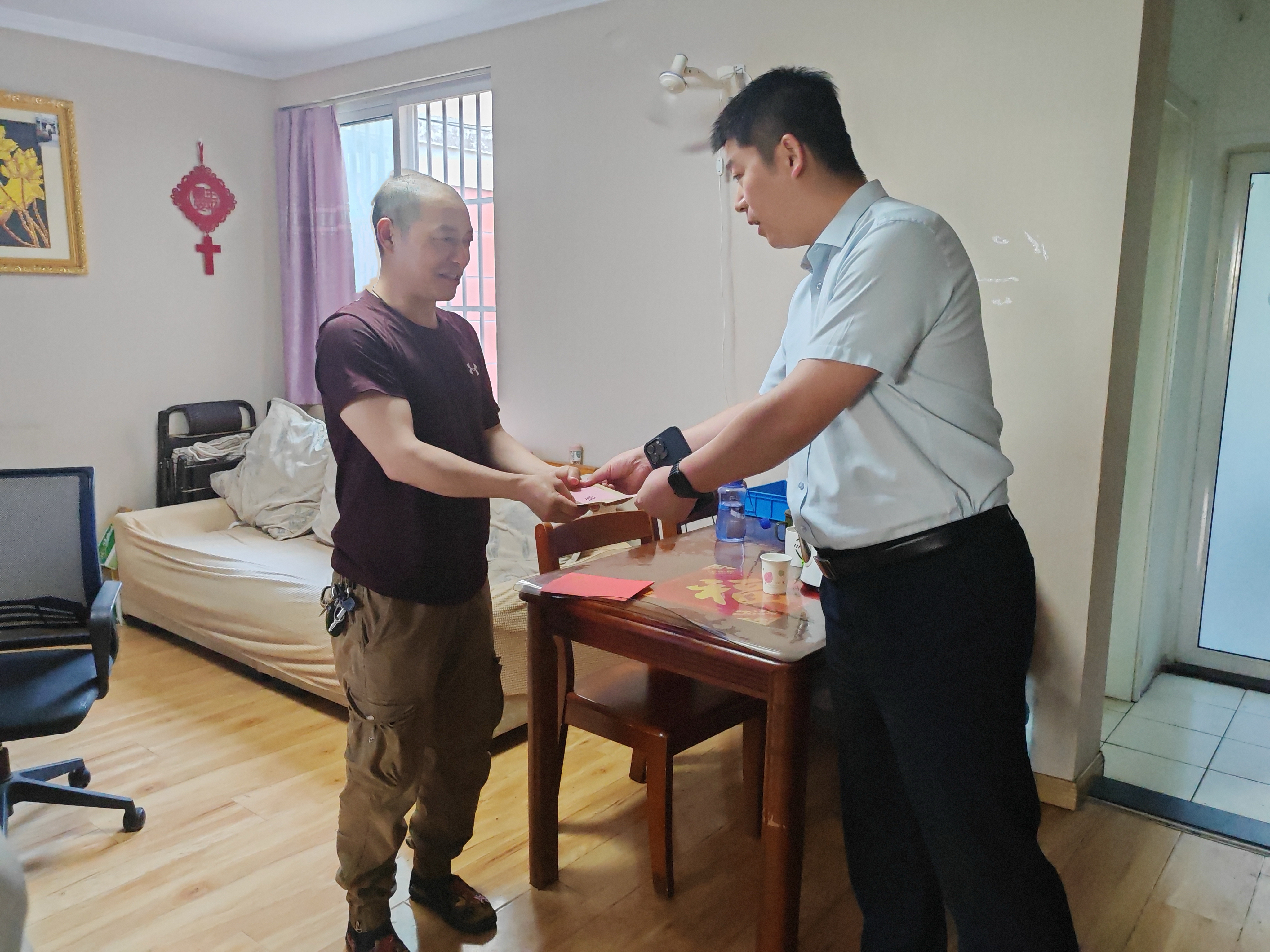 王學(xué)兵一行先后來到困難黨員家中,與他們親切交談并為他們送上慰問金。在困難黨員家里,王學(xué)兵分別詢問了困難黨員的身體狀況和生活情況等,叮囑他們要保持積極樂觀心態(tài)面對困難。