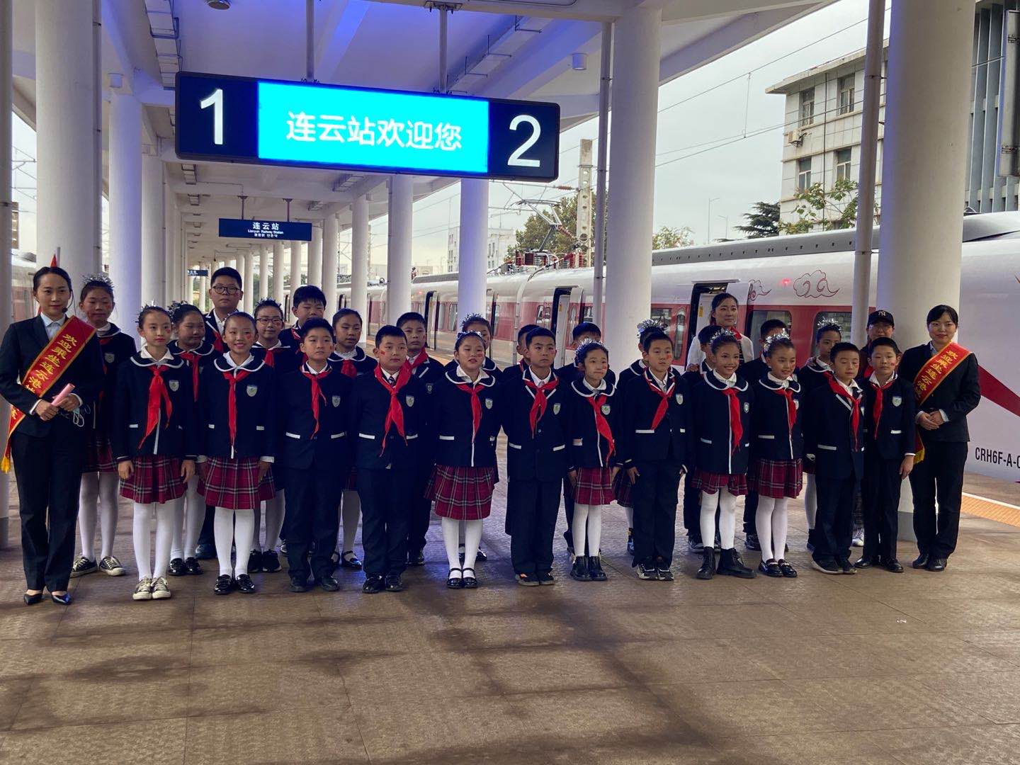 10月15日下午,院前小學(xué)“紅領(lǐng)巾巡訪隊”的隊員們,在老師的組織帶領(lǐng)下來到城市動車連云站乘坐S3108次列車,小隊員們情緒十分激動,臉頰的左側(cè)還貼著鮮亮的“五星紅旗”,他們著裝統(tǒng)一,精神抖擻,整齊有序的跟隨著城市動車的工作人員走進(jìn)了車廂。
