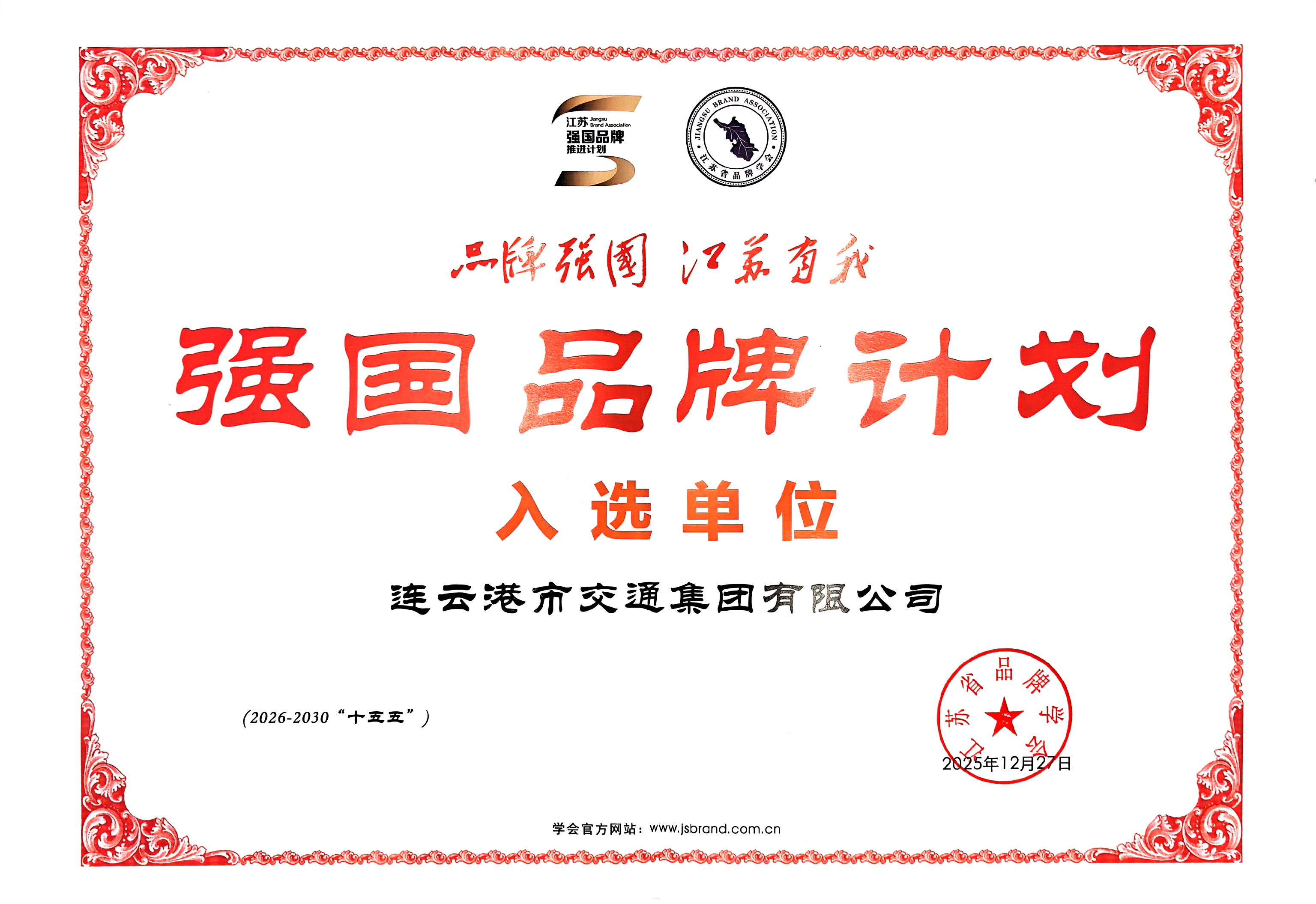 在“十四五”收官與“十五五”謀篇關(guān)鍵節(jié)點(diǎn),由新華日報(bào)社、江蘇省品牌學(xué)會聯(lián)合主辦的第十六屆新華高峰會暨2025江蘇品牌創(chuàng)新發(fā)展大會在南京舉行。交通集團(tuán)憑借卓越的品牌實(shí)力、高質(zhì)量發(fā)展實(shí)績及社會貢獻(xiàn),成功入選“品牌強(qiáng)國·江蘇有我”強(qiáng)國品牌計(jì)劃,獲頒榮譽(yù)證書,標(biāo)志著集團(tuán)品牌建設(shè)成效獲省級權(quán)威認(rèn)可。