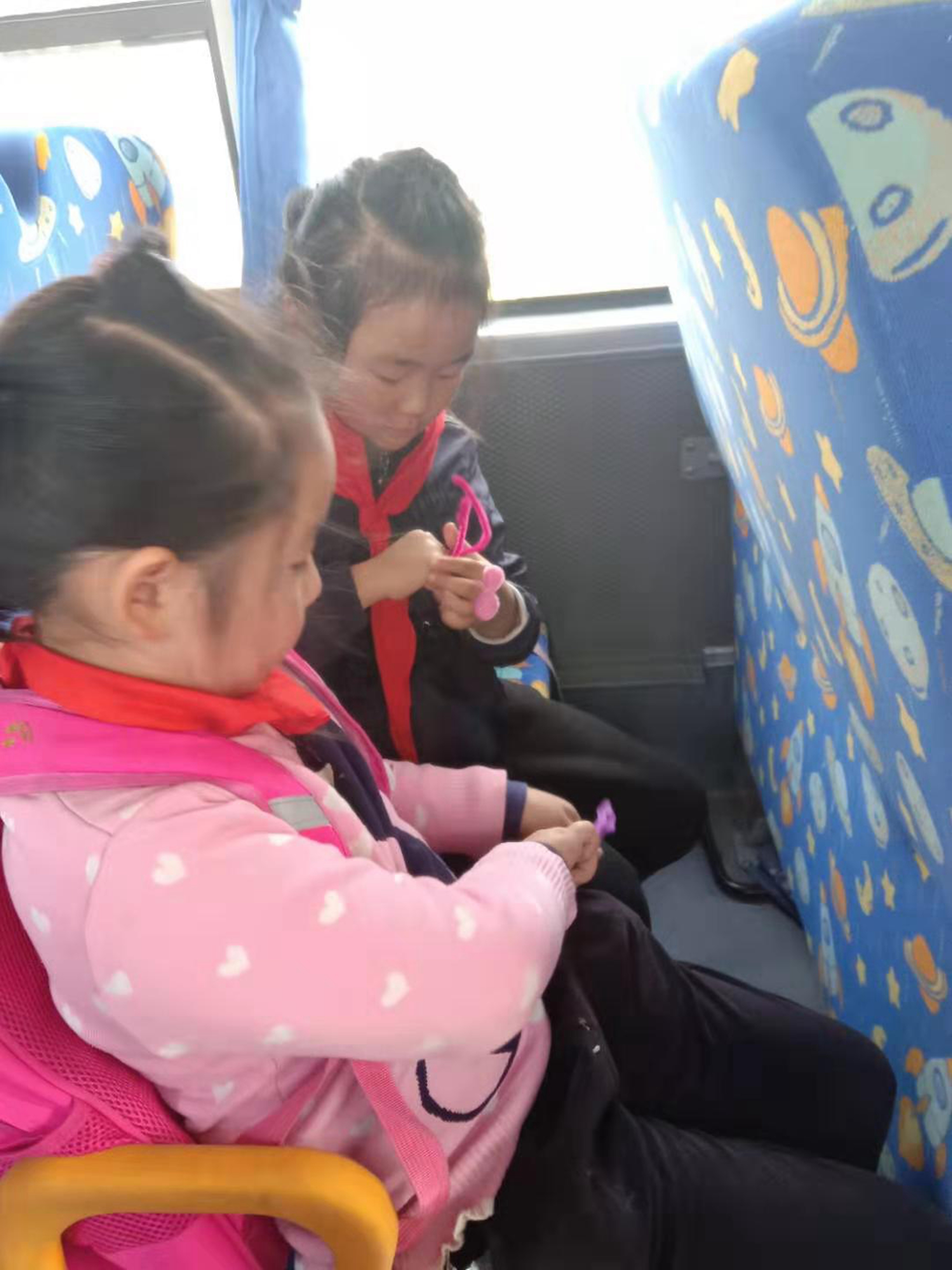 徐興成主要圍繞“紅色傳承”傳揚(yáng)的“少年強(qiáng)、中國強(qiáng)”為主題,向乘車的36位小朋友講解手工制作的重要性,向每一個小朋友發(fā)放編制工具,在講解的基礎(chǔ)上要求他們發(fā)揮自己想象力編制物品,不一會兒乘車學(xué)生編制的花朵、眼鏡等各式各樣的物品呈現(xiàn)在眼前,小朋友們交上了滿意的答卷。