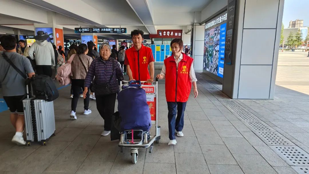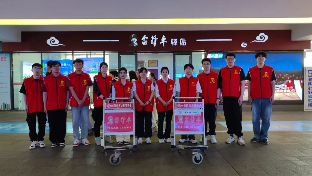 為保障志愿服務順利開展,“雷鋒車”組為志愿者購買人身保險,協(xié)調通勤車輛,并結合學生課程安排和服務意愿,科學規(guī)劃服務時段與崗位。在驛站工作人員的帶領下,大學生志愿者們迅速投入工作,主動為攜帶大件行李的旅客提供搬運協(xié)助,耐心解答交通換乘、旅游景點等咨詢,熱情推薦港城特色打卡點,還特別關注老幼病殘孕等特殊群體,提供全程護送乘車服務。