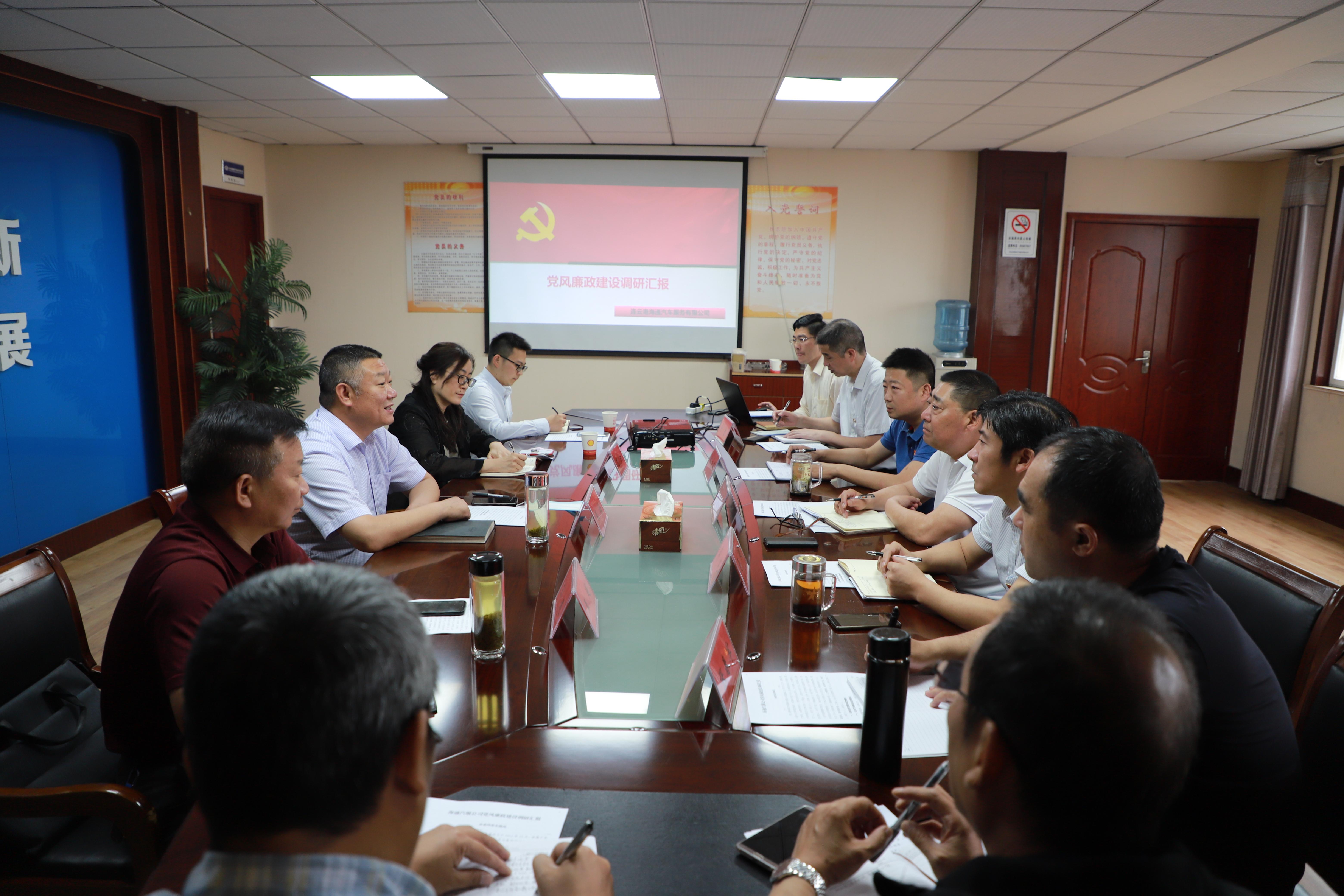 6月18日上午,市紀委監(jiān)委派駐第二十一紀檢監(jiān)察組組長張海帶領(lǐng)調(diào)研組一行4人,到汽服公司調(diào)研黨風(fēng)廉政建設(shè)工作,公司全體領(lǐng)導(dǎo)班子成員及相關(guān)部門負責(zé)人參加調(diào)研活動。