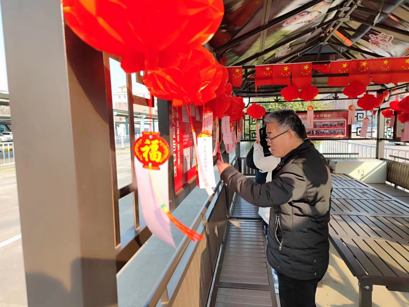 “一求為官,廉潔為先”(打一古書),“最有學(xué)問的人。(打一成語)”。當(dāng)天共放出了約60條燈謎?;顒?dòng)現(xiàn)場(chǎng),融知識(shí)性、趣味性為一體的燈謎懸掛在紅心亭供干部職工們競(jìng)猜,謎面涵蓋安全、黨建、廉政、生活、歷史等事項(xiàng)一應(yīng)具全,謎底包含字謎、安全知識(shí)、成語、歷史知識(shí)等內(nèi)容應(yīng)有盡有,若沒有“現(xiàn)代手段”還是要費(fèi)一番腦力。大家圍在一起,有的抬頭閱讀、有的互相探討,紛紛使出渾身解數(shù)、踴躍競(jìng)猜,分享猜謎經(jīng)驗(yàn),共享競(jìng)猜樂趣。