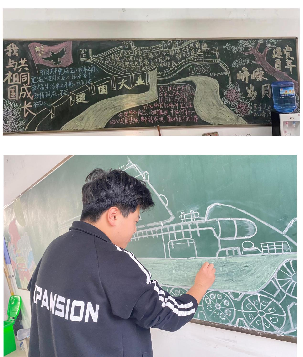 此次評比以班級為單位,共有15幅黑板報作品參評。各班學生們積極參與,認真設計,精心制作,一星期時間,一幅幅主題思想突出,圖文并茂,風采各異的黑板報脫穎而出,形成一道亮麗的風景線,表達了學生們對祖國、對黨的熱愛。